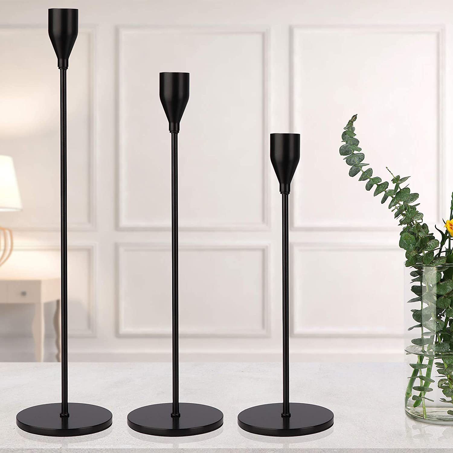 DEVI Matte Black Candlestick Holders (3 pcs)